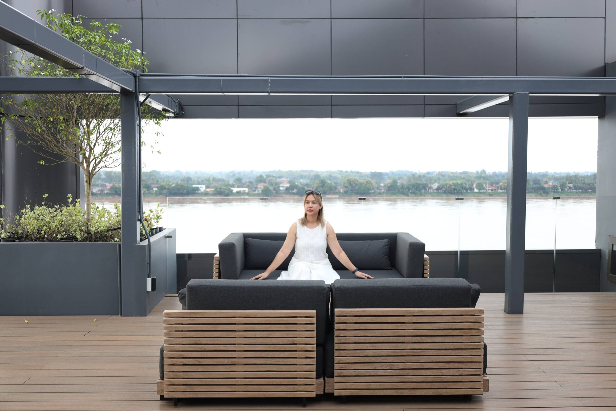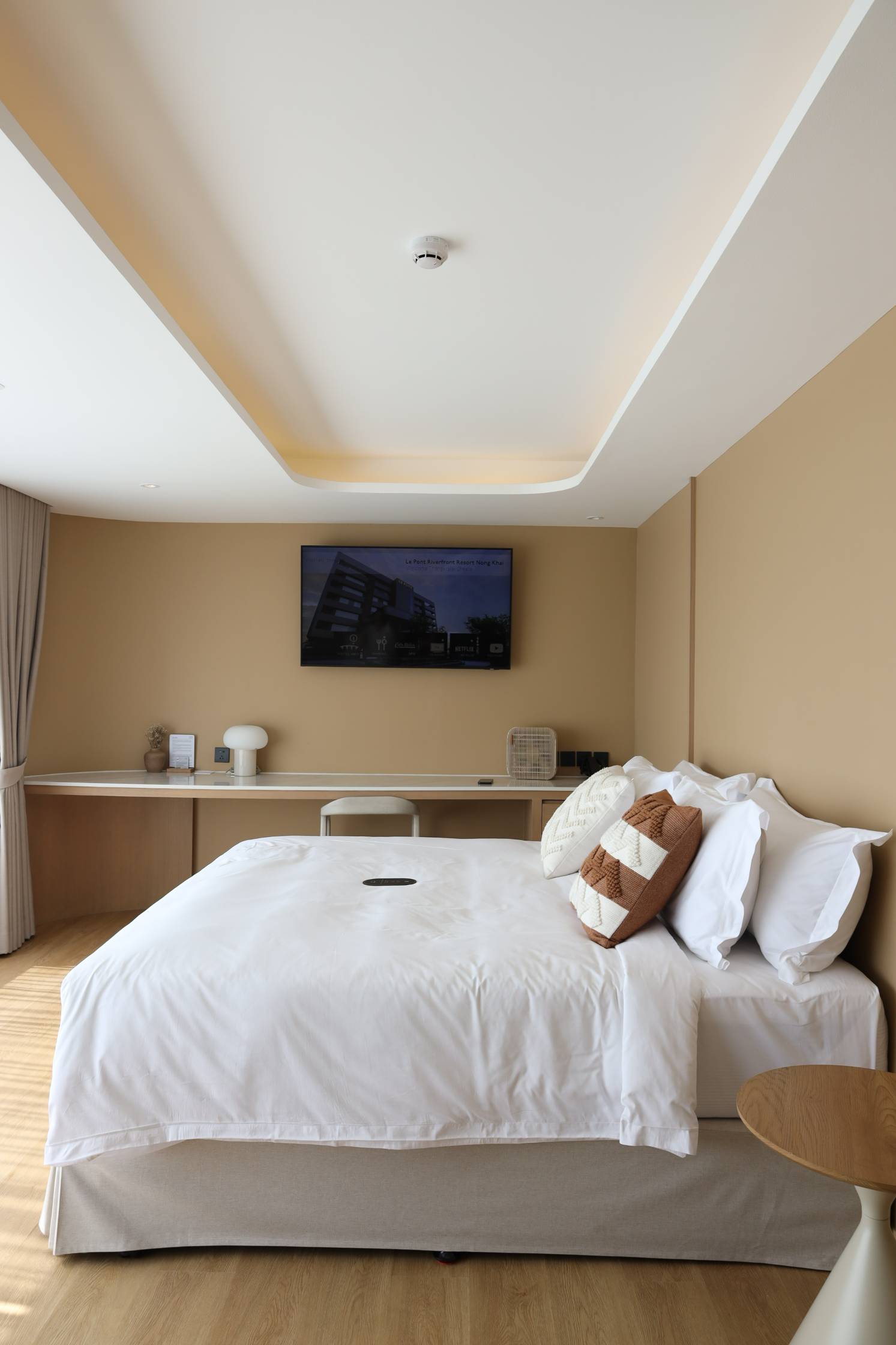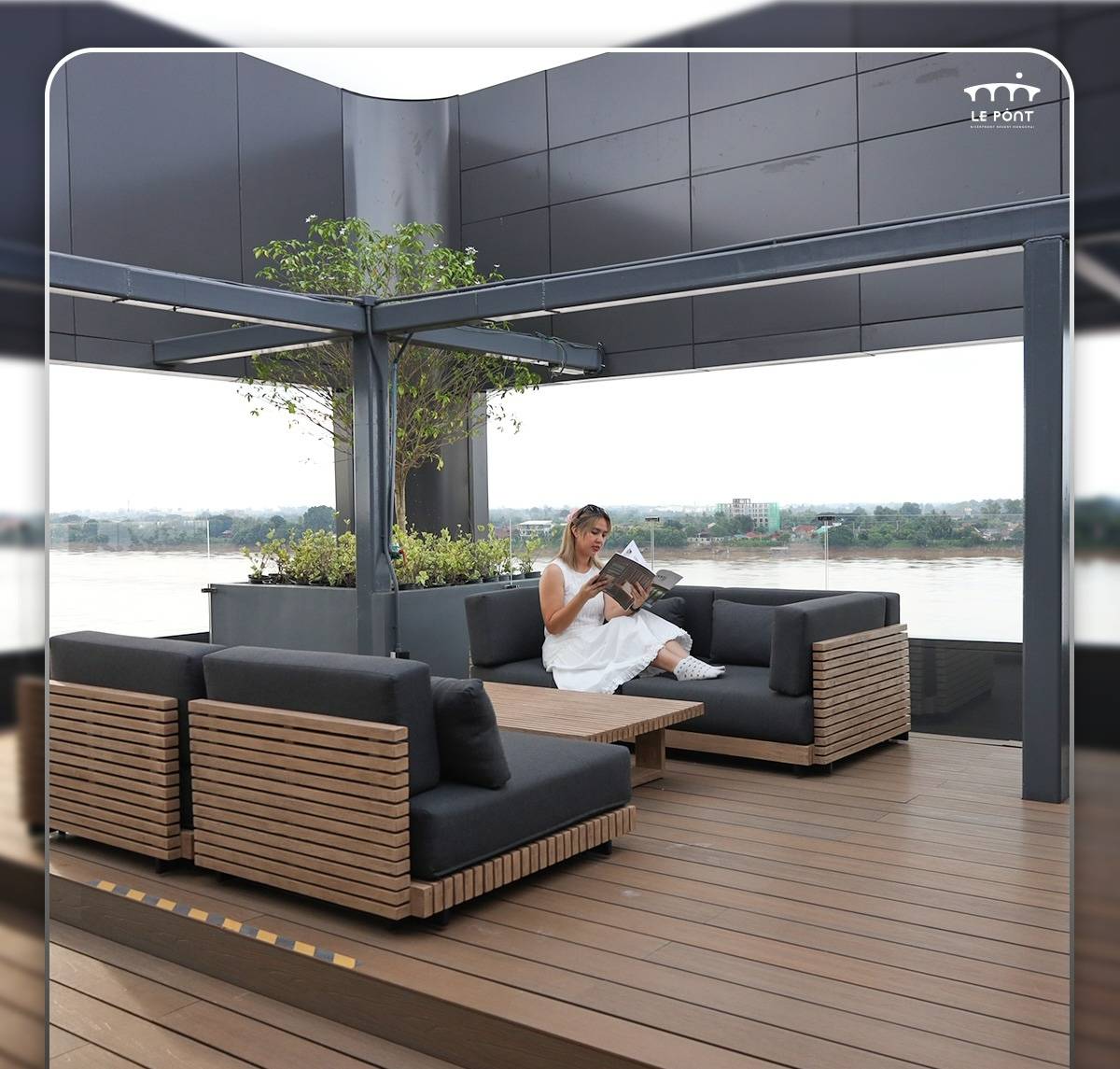 Stay by the river at Le Pont Riverfront Resort. Modern rooms, free breakfast, fitness, swimming pool and parking. Le Pont Riverfront Resort offers a total of 69 rooms, divided into 4 different styles, all designed in a Modern Contemporary aesthetic. The color palette of black, gray, and brown creates a luxurious, warm atmosphere, seamlessly blending with the natural beauty of the Mekong River.
